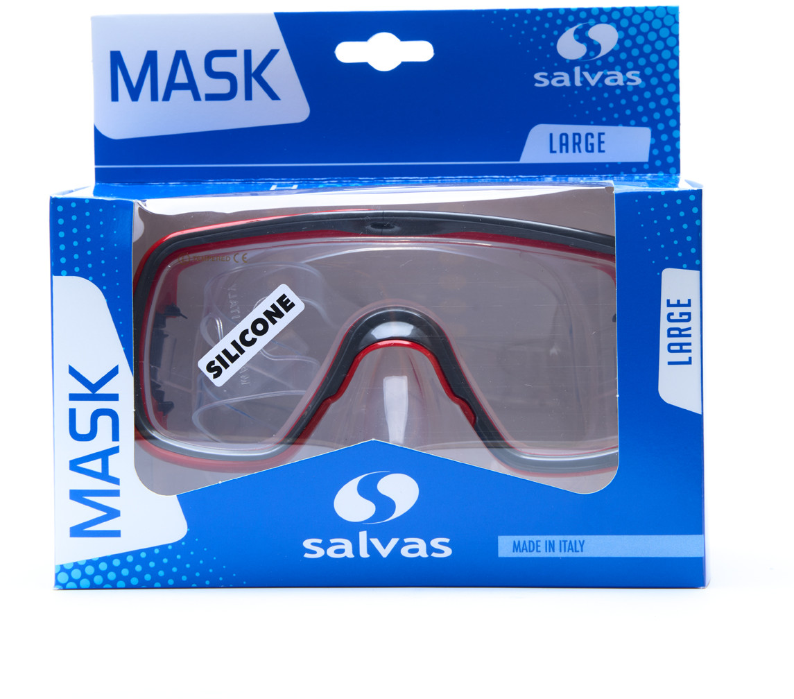 Маска для подводного плавания «Geo Mask» с цельной (одинарной) линзой из безопасного стекла, оправой из поликарбоната, и обтюратором из мягкого силикона. Широкий ремешок из силикона с системой быстрого регулирования маски по бокам. Маски Salvas производятся в Италии с использованием только качественного сырья итальянских производителей.