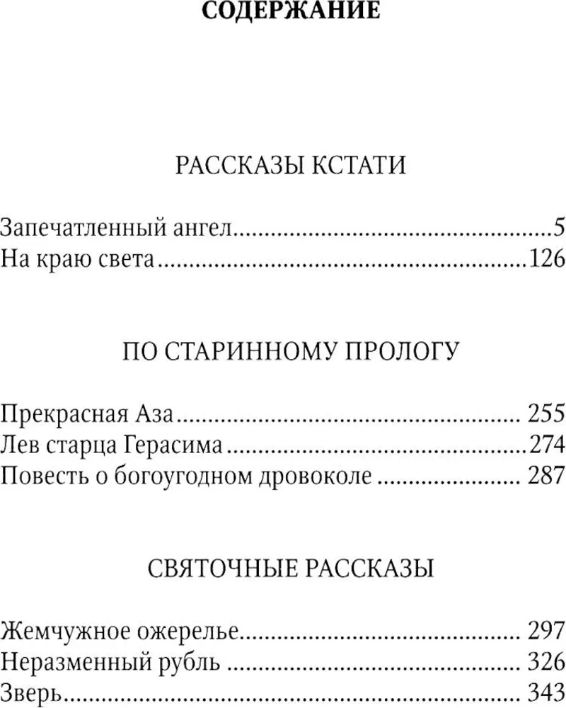 В сборник рассказов Н.С. Лескова (1831-1895) вошли избранные произведения, в которых автор обращается к истории первых веков христианства («Прекрасная Аза», «Лев старца Герасима», «Повесть о богоугодном дровоколе»), использует документальные свидетельства православного русского миссионера («На краю света»), следует благочестивой литературной традиции своего времени (цикл «Святочные рассказы»). |