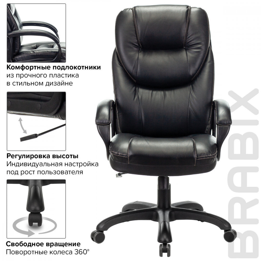 Кресло Brabix «Nord» прекрасно подойдет для обустройства кабинета начальника. Благодаря строгому внешнему виду оно располагает к долгой продуктивной работе. Мягкая искусственная кожа (экокожа) приятна на ощупь, в отличие от натуральной она не холодная, с нее не соскальзываешь. Благодаря тканой основе и пористому полиуретану экокожа отлично пропускает воздух, что положительным образом сказывается на комфорте во время эксплуатации. Материал износоустойчив и неприхотлив в уходе — кресло сохранит привлекательный внешний вид в течение длительного времени. |