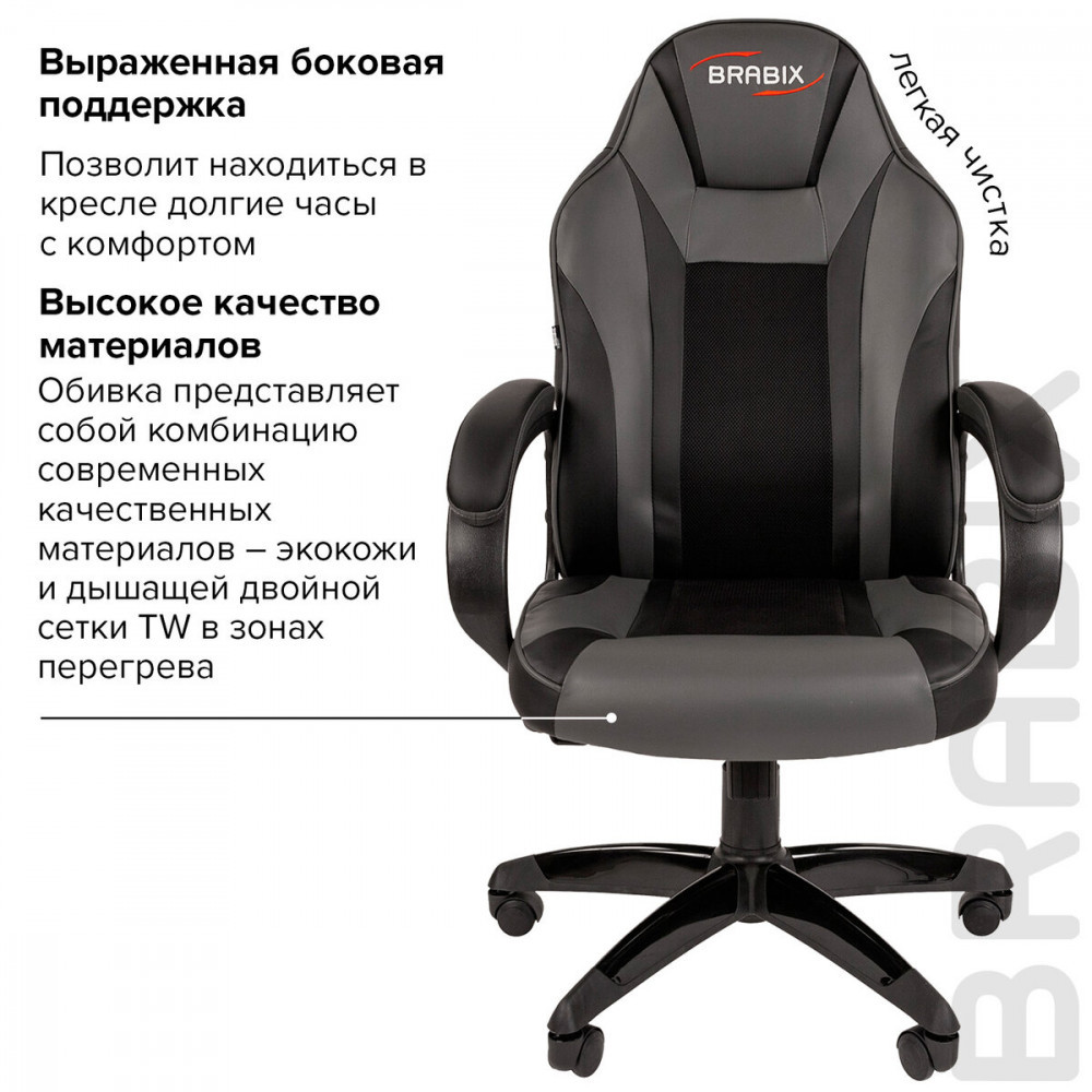 Модель оснащена механизмом качания «Top-Gun Lux» с регулировкой усилия качания под вес сидящего и возможностью фиксации в любом положении. Живи играя, Играй комфортно На стильном кресле «Brabix Tanto GM-171» по удобной цене.
