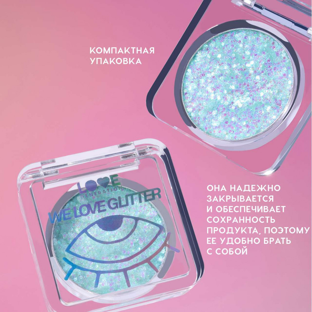 Love Generation Глиттер для лица «We love glitter», оттенок 06 Serenade серебристо-зеленый