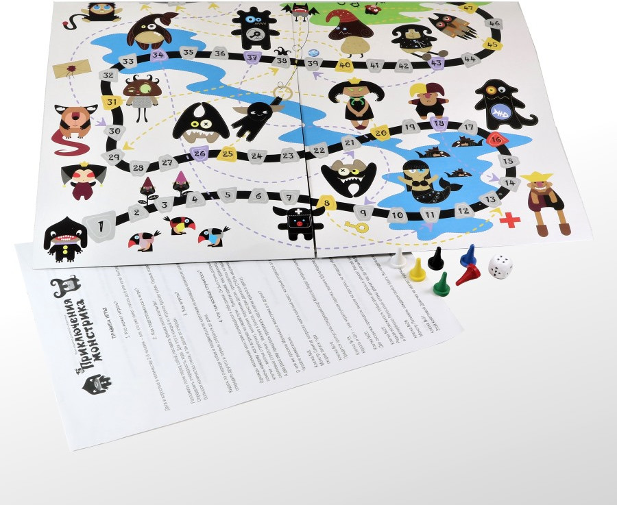 Однажды маленький Монстрик возвращался к себе домой. Он был очень добрый и дружелюбный, поэтому старался помочь каждому, кого встречал на своем пути. Такова предыстория к началу этой интересной и увлекательной настольной игры-ходилки. В приключениях «Маленького монстрика» могут принимать участие дети и взрослые от 2 до 6 человек в возрасте от 5 лет — все, кто уже умеет считать до шести или хочет быстро научиться это делать! |