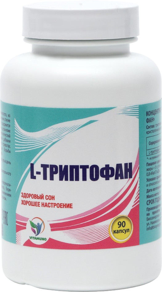 L-триптофан — это незаменимая аминокислота, из которой синтезируются В и серотонин, также необходима для создания протеинов, содержится в белковой пище. Снижение триптофана в организме влияет на поведение человека и его психологический настрой, поэтому прием этой пищевой добавки помогает при депрессивных состояниях и тревогах. Эта аминокислота используется для борьбы с бессонницей и нарушениями биоритмов. |
