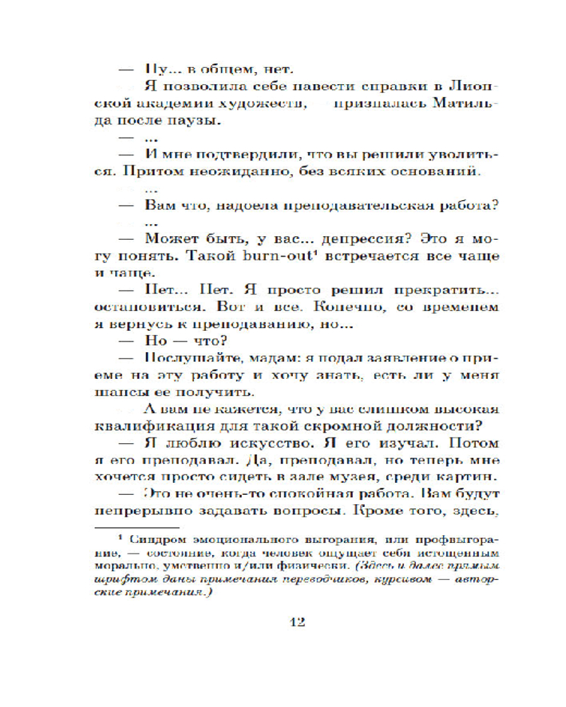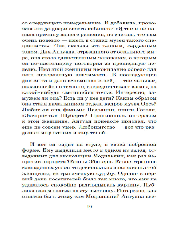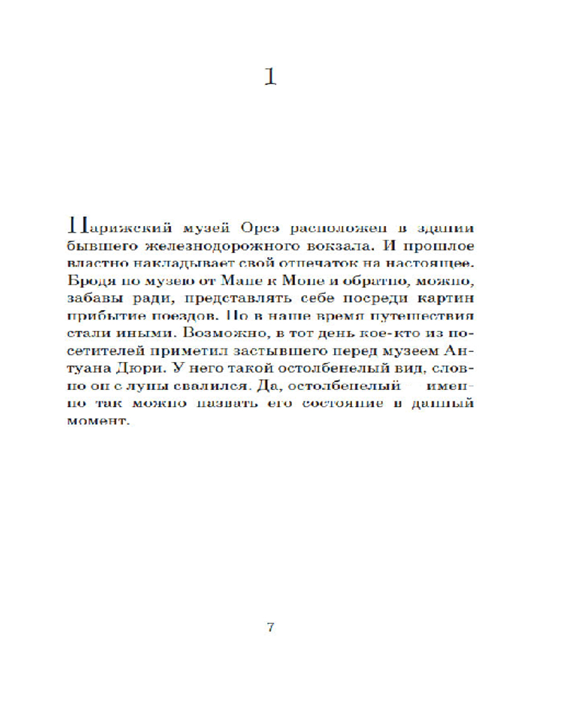 Серия: The Big Book (мягкая обложка) Антуан Дюри, профессор Лионской академии изящных искусств, любимец коллег и студентов, внезапно бросает работу, уезжает в Париж, никому не оставив нового адреса, и нанимается в музей Орсэ смотрителем. Целыми днями он сидит в музейном зале, разглядывает работы Модильяни, избегает отвечать на вопросы и вообще предпочитает не разговаривать. Этому человеку явно есть что скрывать — но что же произошло? Так просто и не объяснишь, и потребуется много чуткости и терпения, чтобы Антуан смог вернуться, понять и принять мучительную историю, которая погнала его прочь из дома. В этой истории, рассказанной Давидом Фонкиносом — писателем, сценаристом, музыкантом, любимцем читающей и кинопублики, автором двух с лишним десятков книг, переведенных на сорок языков, — будет молодая художница, подлинный талант, сломанная судьба, и человеческая хрупкость, и любовь, и то, что выдает себя за любовь, и преодоление горя, и неизбежная красота. |