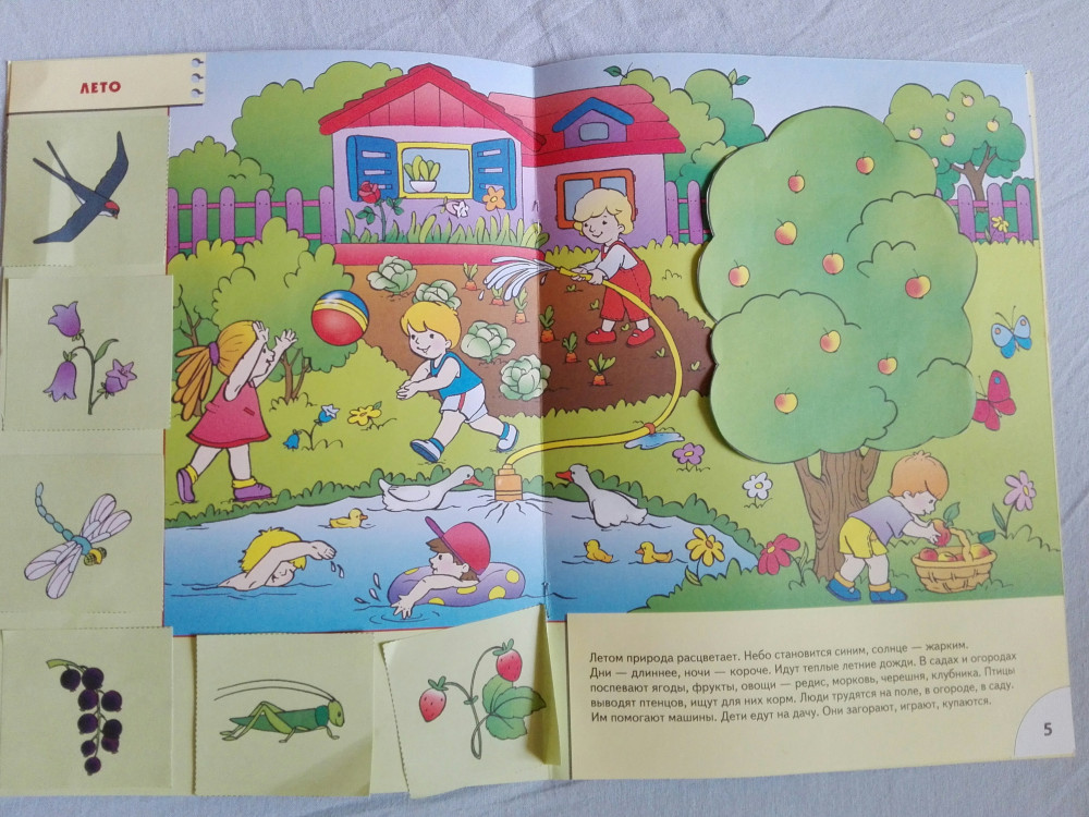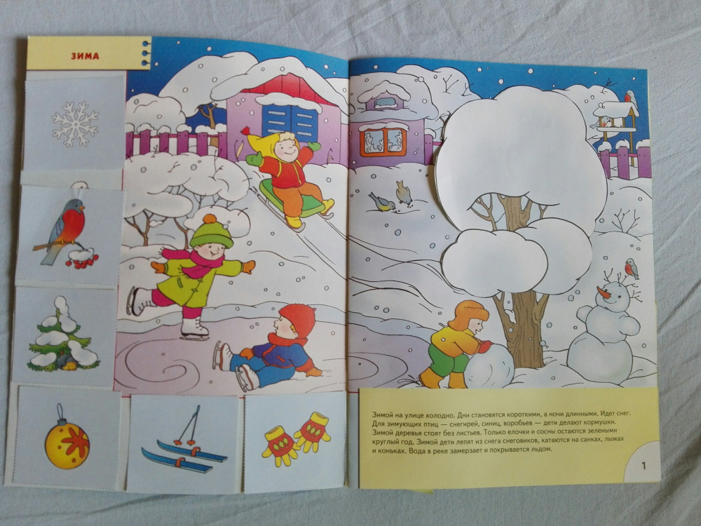 Пособие о временах года. Снабжено картинками, которые нужно наклеивать. Без изысков.