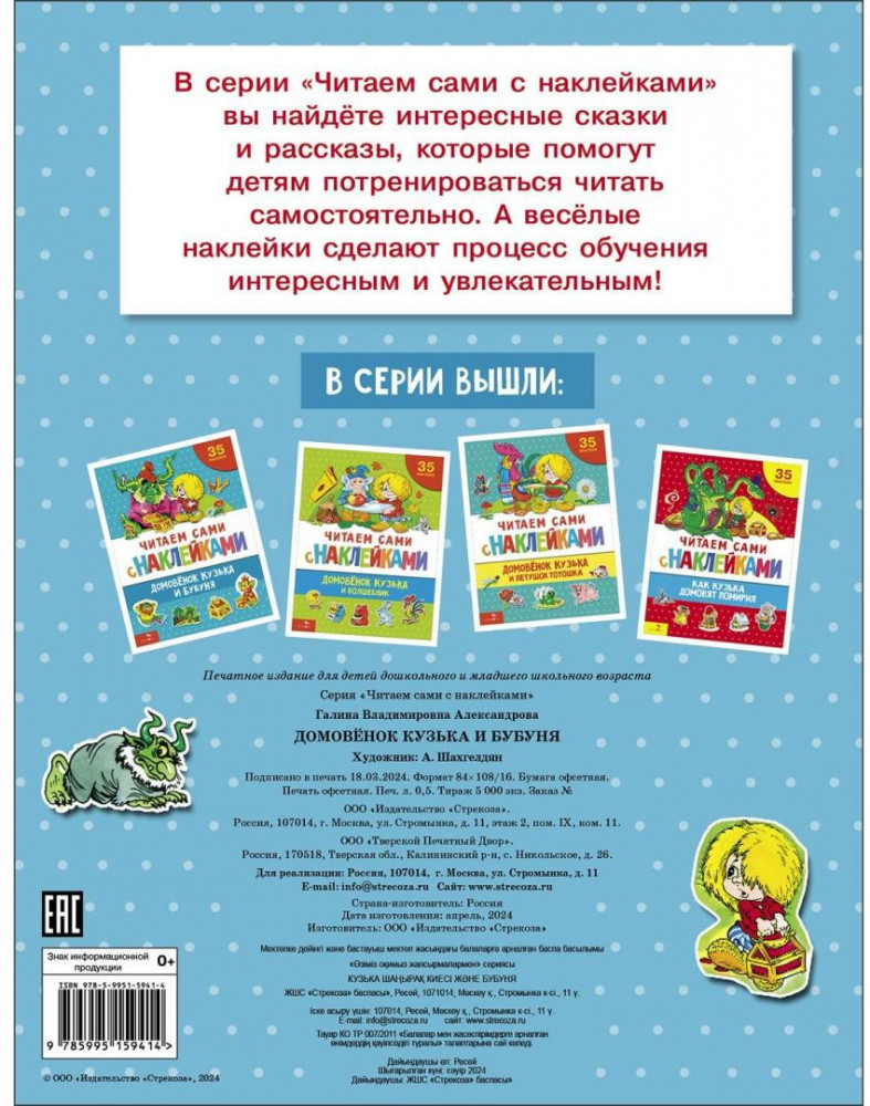 Серия: Читаем сами с наклейками Учимся читать вместе с любимыми героями сказок о домовенке Кузьке. Однажды злой волшебник Бубуня появился в лесу и забрал у лесных жителей всю радость. Горюют целыми днями пташки и зверюшки, водяные с лешими за порядком перестали следить. Домовенок Кузька решил всех выручить и отправился на поиски Бубуни, чтобы вернуть в лес радость. Книжка с наклейками для детей дошкольного возраста для самостоятельного чтения. |