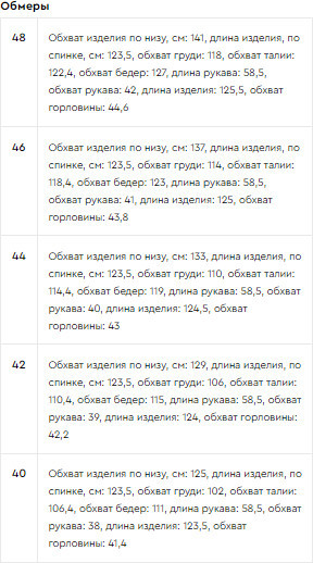 Размер производителя