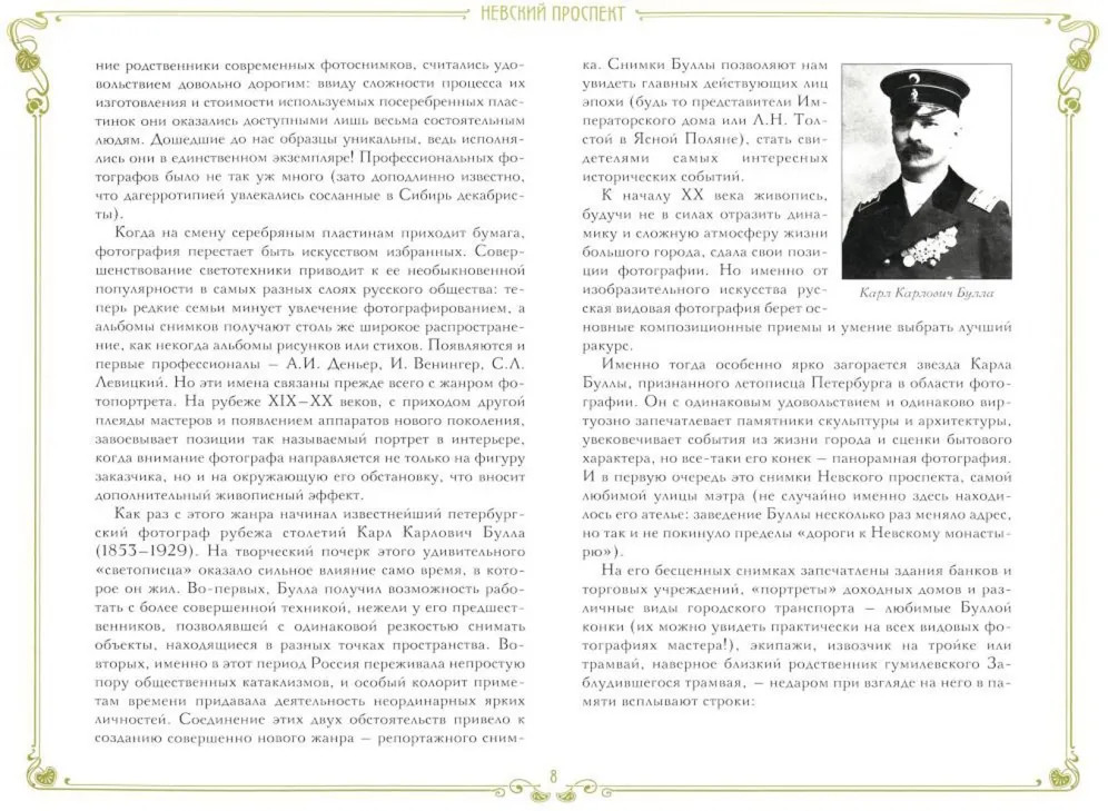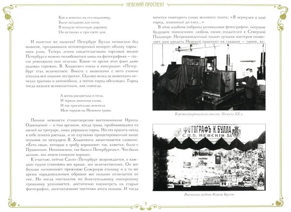 История Санкт-Петербурга в фотографиях. Конец XIX — начало XX века. АльбомВ данный момент этот товар отсутствует в продаже. Возможно, у нас найдется аналогичный или похожий товар здесь. Серия: Все о Санкт-Петербурге В альбоме собраны уникальные снимки первых профессионалов российской фотографии, и прежде всего признанного фотолетописца Петербурга Карла Буллы, которые поведали миру о великой судьбе Северной столицы, запечатлев на века кадры истории главной ее улицы — Невского проспекта. «Портреты» памятников скульптуры и архитектуры, зданий банков и торговых учреждений, доходных домов, различные виды городского транспорта, вывески, придающие неповторимый колорит облику городских улиц, а также официальная фотохроника и сценки бытового характера — словом, вся история этой удивительной улицы предстанет перед глазами читателей в фотокартинах ушедшей эпохи. |