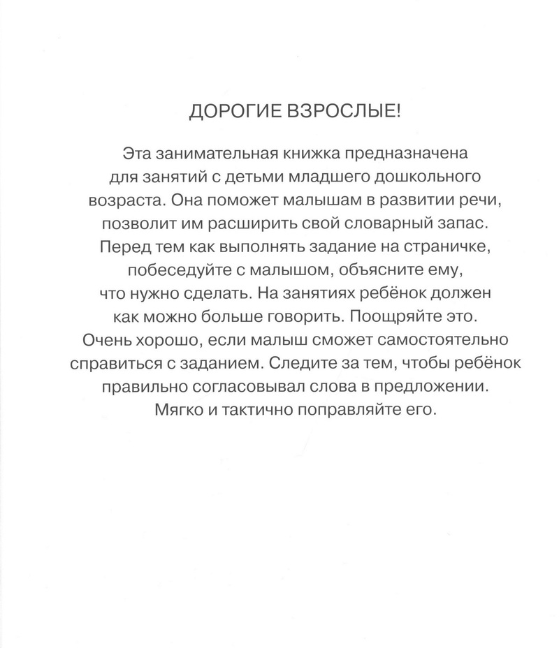 Книги этой серии покупаю не в первый раз. Серия очень нравится. Картинки простые, понятные ребенку 2-3 летнего возраста. Текст заданий, который зачитывается ребенку в процессе обучения, продуман и понятен ребенку. Видно, что создатели книги хорошо учли и продумали все моменты, такие как размер шрифта, качество иллюстраций и т.п. Рекомендую
