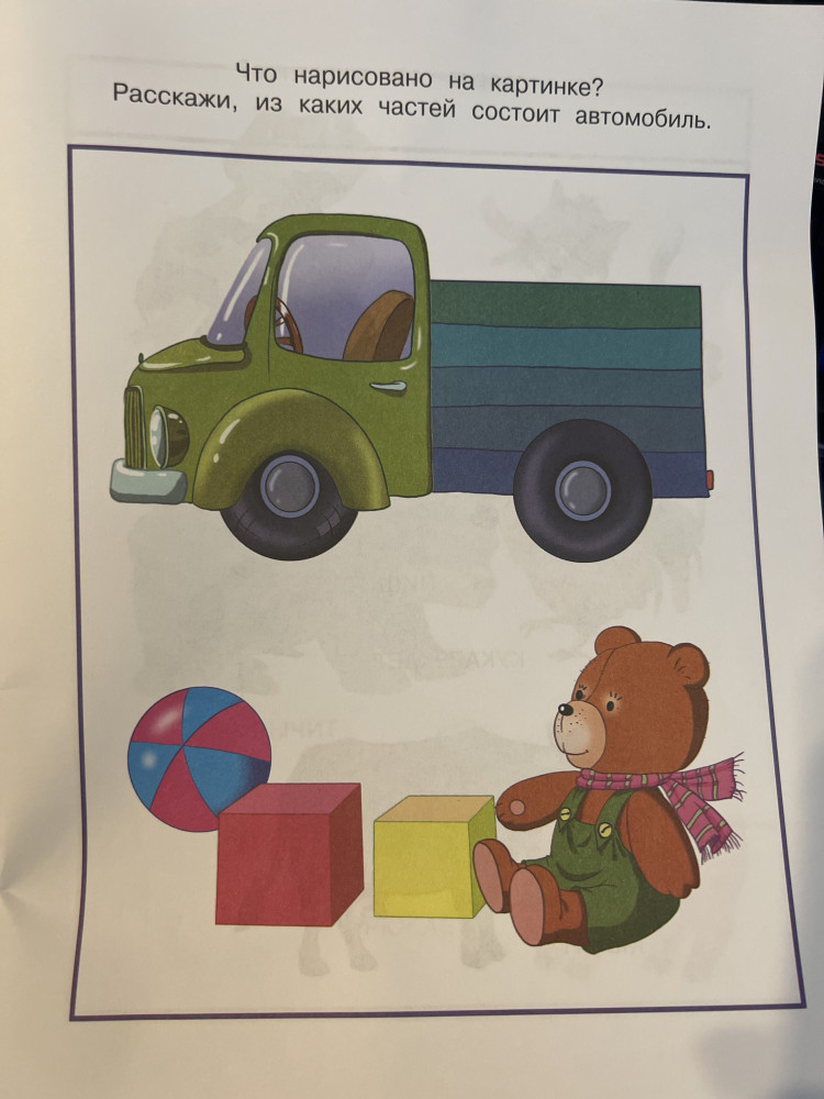 Все составлено таким образом, чтобы ребенок мог подключая фантазию, рассказывать что видит на картинках. По своему отвечать на вопросы, которые мама может прочитать и задать ему.
