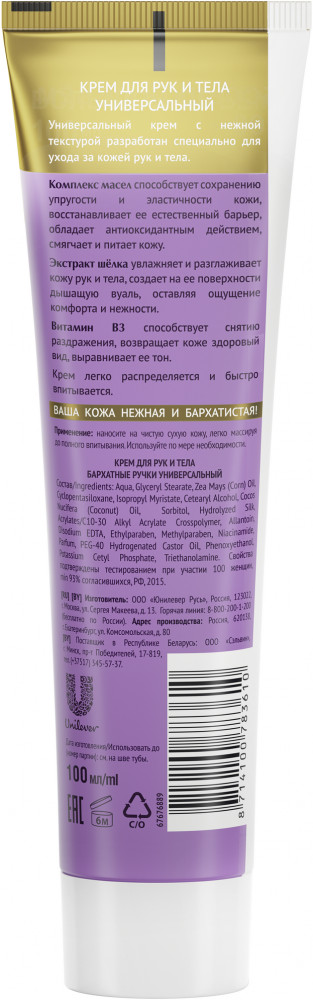 Бархатные ручки Крем для рук и тела «Нежные прикосновения»-20%