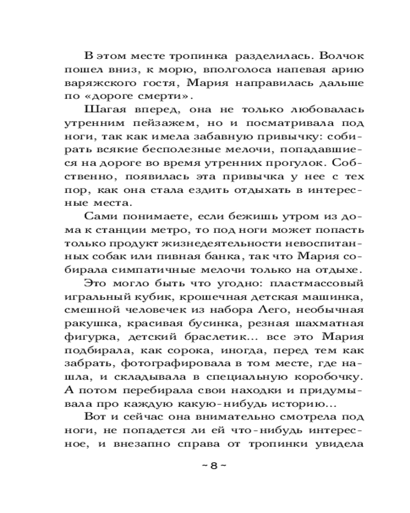Загадка лунной богиниНаталья Николаевна Александрова В данный момент этот товар отсутствует в продаже. Возможно, у нас найдется аналогичный или похожий товар здесь. Серия: Роковой артефакт (м) С древних времен люди поклонялись Гекате — богине колдовства, магии и лунного света. В ее честь приносили жертвы и строили святилища. Но всегда находились и те, кто пытался завладеть бесценными реликвиями, и в первую очередь венцом Гекаты, несущим в себе силу древних и открывающим его владельцу тайны магии. Но однажды священный символ был утерян. На протяжении нескольких веков его судьба оставалась неизвестна, а последователи культа Гекаты не прекращали его поиски. Детектив-любитель Надежда Лебедева не имела ко всему этому никакого отношения, однако именно ей выпал шанс приоткрыть завесу тайны лунной богини. В пансионате на берегу Финского залива, где она отдыхала, одна из постоялиц упала с обрыва. Полиция констатировала несчастный случай, но Надежда, подозревая, что не все так просто, начала собственное расследование, нити которого привели ее к членам тайного общества «Слуги Гекаты»... |