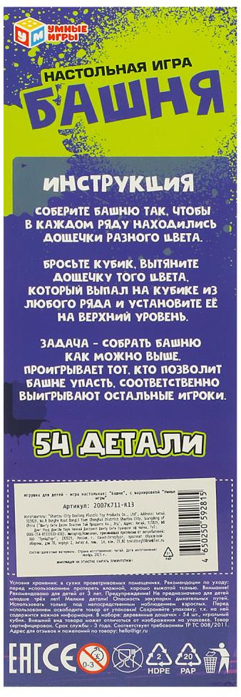 Умные игры Игра настольная «Башня»