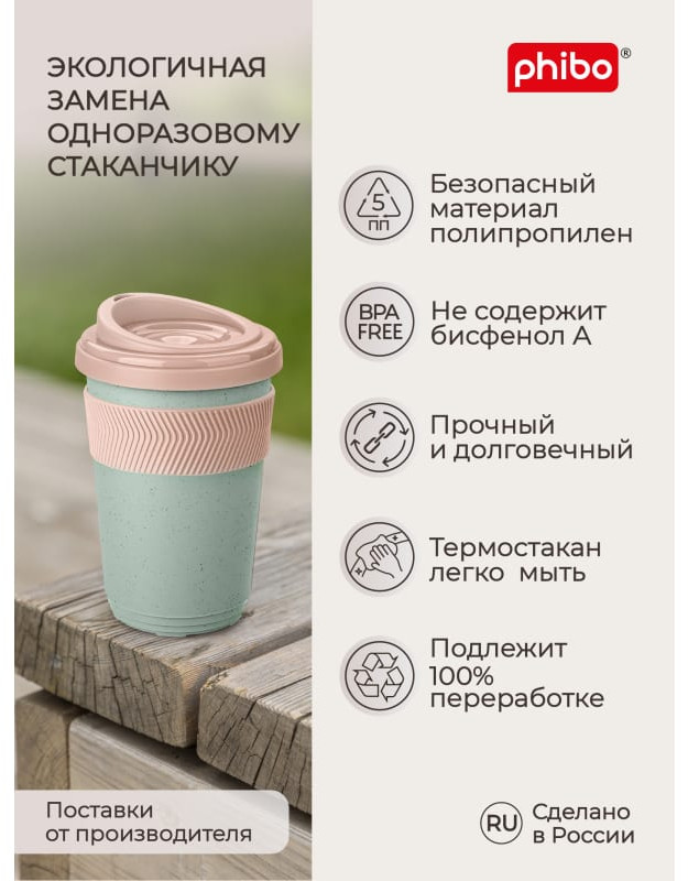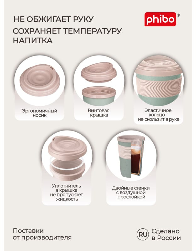 Phibo Термостакан с противоскользящим кольцомВ данный момент этот товар отсутствует в продаже. Возможно, у нас найдется аналогичный или похожий товар здесь. Термостакан с противоскользящим кольцом Phibo идеален как для активного образа жизни, так и для созерцательного наслаждения чаем или кофе. Изготавливается из безопасного полипропилена, и не содержит бисфенол А, фталаты, меламин и другие вредные вещества (в отличие от бамбуковых или одноразовых стаканов). Воздушная прослойка между стенками сохраняет температуру напитка, а также не позволяет внешней стенке стакана сильно нагреваться. Предусмотрена манжета из эластомера. Она дополнительно ограждает ладонь от температурного воздействия и препятствует скольжению стакана в руке. |