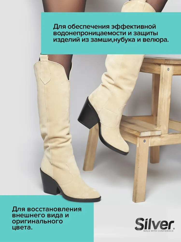 Спрей-краска для нубука, замши и велюра. Восстанавливает внешний вид и возвращает первоначальный цвет изделия. Обеспечивает эффективное водоотталкивающее и водонепроницаемое действие, защищая обувь от воды, дождя и снега. Краска-Реставратор специально разработана для обуви из замши, нубука и велюра. Средство восстанавливает цвета обуви и одежды, маскирует потертости. Краска сохраняет первоначальную ворсистую структуру материалов. Подходит для изделий из мембранных материалов. Улучшает внешний вид. Стойкий равномерный цвет. Водоотталкивающий эффект. Молекулы красителя глубоко проникают в структуру замши, обеспечивая равномерное и стойкое окрашивание. Фторкарбоновые смолы создают дополнительную защиту от влаги и соли, не нарушая структуру замши. Специальный ухаживающий комплекс обеспечивает полноценный уход за замшей и увеличивает срок ее службы. Может применяться для изделий с климатическими мембранами.