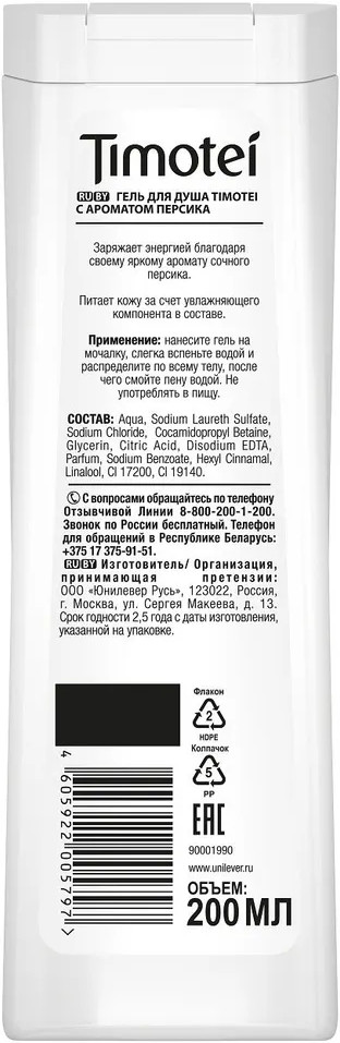 Timotei Гель для душа с ароматом персика