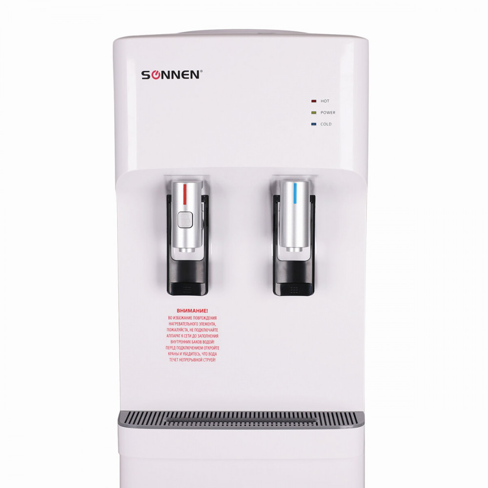 Напольный кулер Sonnen FSE-02H идеально подойдет для сотрудников и посетителей предприятий, офисов, городских и частных компаний, а также иных объектов, чтобы обеспечить питьевой холодной и горячей водой. Вода нагревается с помощью ТЭНа мощностью 500 Вт, что позволяет достичь температуры 90 °С за считанные минуты. Модуль электронного охлаждения мощностью 65 Вт обеспечивает поддержание температуры холодной воды на уровне 10 °С. Кулер предназначен для напольного размещения и имеет 2 крана типа «нажим кружкой», а также защиту от протечек воды. Для использования необходимо поместить бутыль в специальное отверстие в верхней части диспенсера. |
