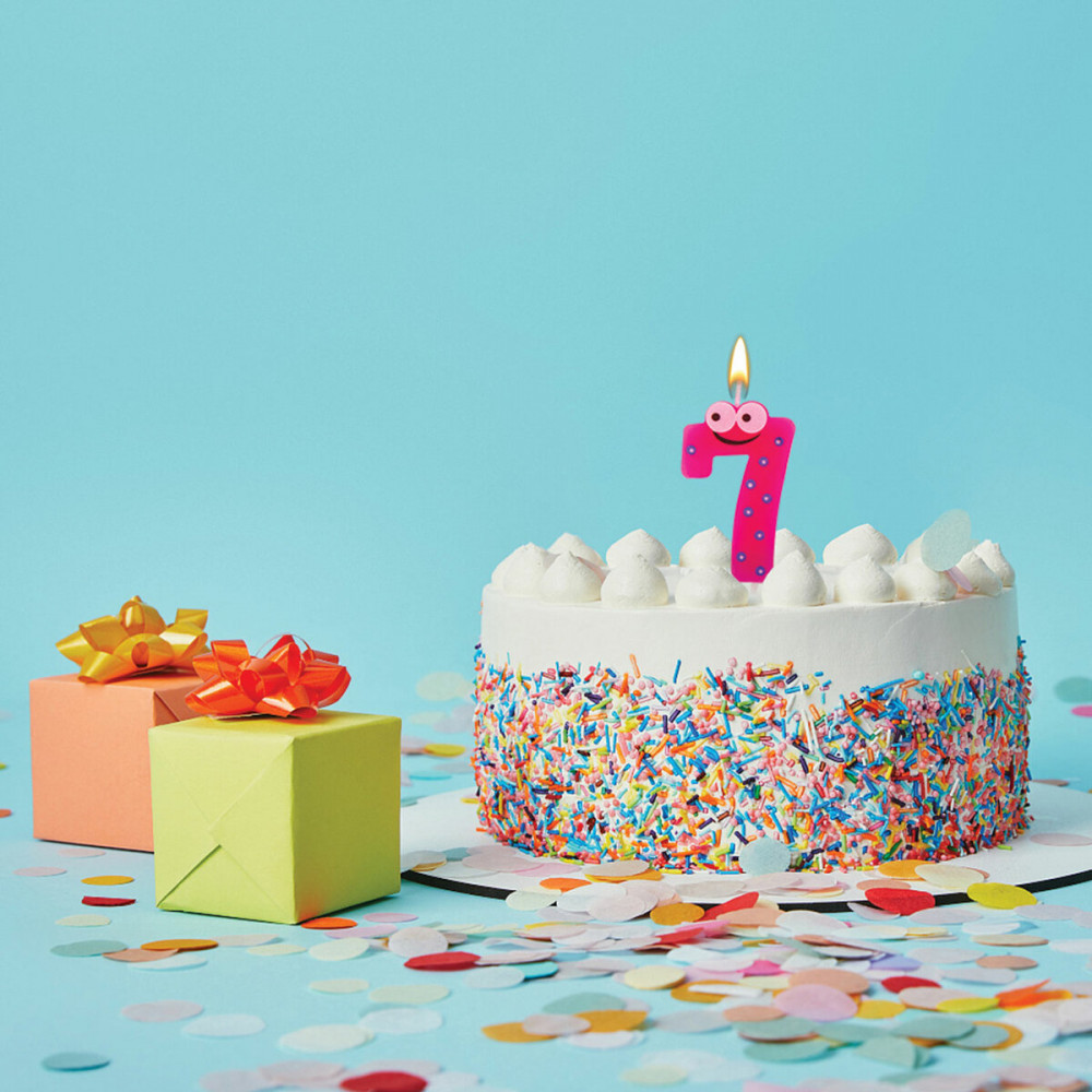 Свечи для торта являются неотъемлемым атрибутом праздника. Свеча-цифра для торта «7» «С глазками» Золотая Сказка станет прекрасным украшением торта и других кондитерских изделий по случаю детского дня рождения. Свеча розового цвета с принтом в виде глазок представляет собой цифру «7». Свеча-цифра выполнена из парафина и укомплектована пластиковым держателем для удобства размещения цифры в торте или другом кондитерском изделии. Высота — 6 см, ширина — 3,3 см, толщина — 1 см. |