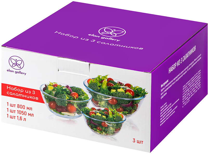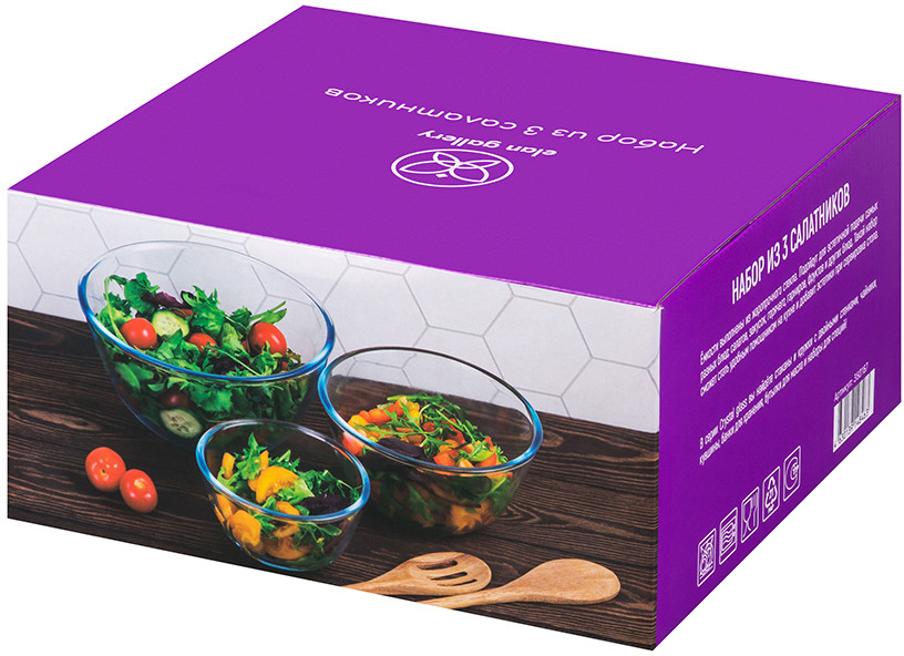 Серия: Crystal glass Набор из 3-х салатников — это идеальное решение для любителей здорового питания и красивой сервировки кухонного стола. Набор включает в себя глубокие салатники нескольких размеров, что позволяет выбирать наиболее подходящий для каждого блюда. В комплект входят ёмкости объёмами 800 мл, 1050 мл и 1,6 литра. Салатники изготовлены из высококачественного жаропрочного стекла. Продукты в такой посуде даже после тепловой обработки сохраняют полезные свойства. В салатниках вы можете не только приготовить различные блюда, но и подавать горячие салаты, закуски, нарезки фруктов или десерты. Набор салатников имеет красивый внешний вид и легко вписывается в любой интерьер. При уходе не рекомендуется применять абразивные моющие средства. Эта посуда устойчива к высоким температурам, поэтому подходит для использования в СВЧ и ПММ. Комплект посуды не занимает много места, так как каждый салатник можно хранить друг в друге. Набор салатников послужит отличным подарком для ценителей функциональных кухонных принадлежностей. |