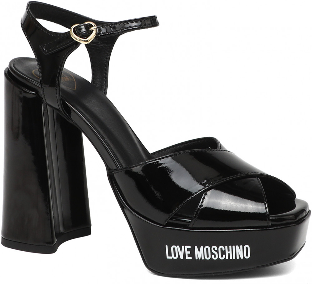 Босоножки Love Moschino — это идеальное сочетание стиля и современной моды. Пара выполнена из натуральной кожи теленка. Обработка материала верха — лаковая. Толщина подошвы — 3,5 см, способ соединения подошвы — клеевой. Материал платформы обтянут лаковой кожей. Подкладка и стелька из натуральной кожи позволяют стопе дышать и меньше потеть, кожа безопасна и поддерживает здоровый микроклимат в обуви. Полнота — F-Medium (средняя).