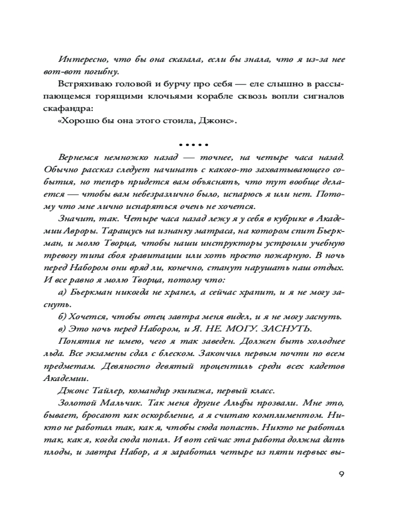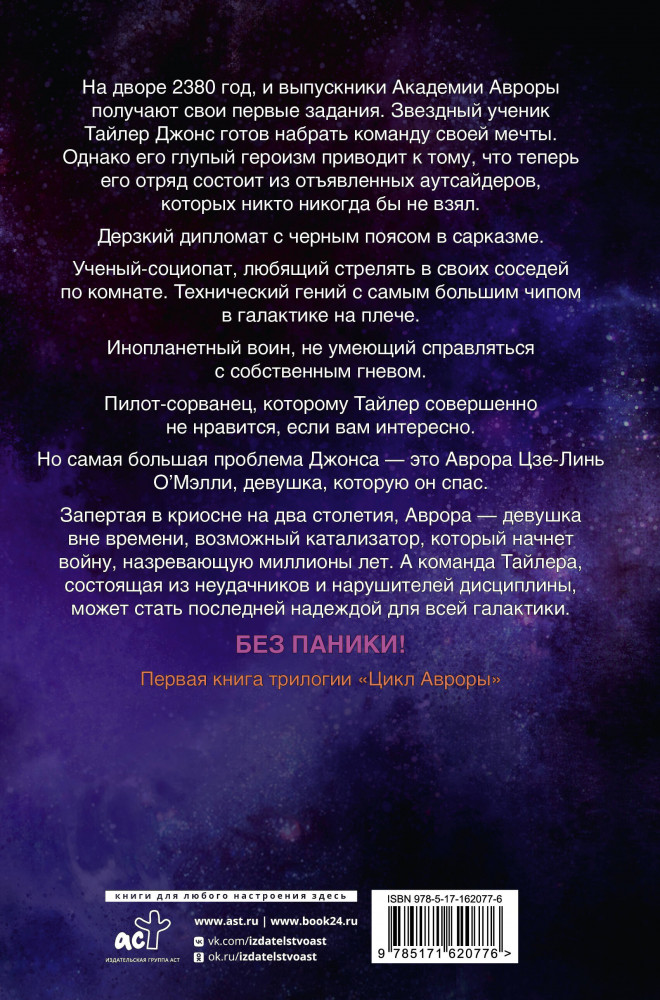 Серия: Миры Джея Кристоффа На дворе 2380 год, и выпускники Академии Авроры получают свои первые задания. Звездный ученик Тайлер Джонс готов набрать команду своей мечты. Однако его глупый героизм приводит к тому, что теперь его отряд состоит из отъявленных аутсайдеров, которых никто никогда бы не взял. Дерзкий дипломат с черным поясом в сарказме. Ученый-социопат, любящий стрелять в своих соседей по комнате. Технический гений с самым большим чипом в галактике на плече. Инопланетный воин, не умеющий справляться с собственным гневом. Пилот-сорванец, которому Тайлер совершенно не нравится, если вам интересно. Но самая большая проблема Джонса — это Аврора Цзе-Линь О’Мэлли, девушка, которую он спас. Запертая в криосне на два столетия, Аврора — девушка вне времени, возможный катализатор, который начнет войну, назревающую миллионы лет. А команда Тайлера, состоящая из неудачников и нарушителей дисциплины, может стать последней надеждой для всей галактики. |