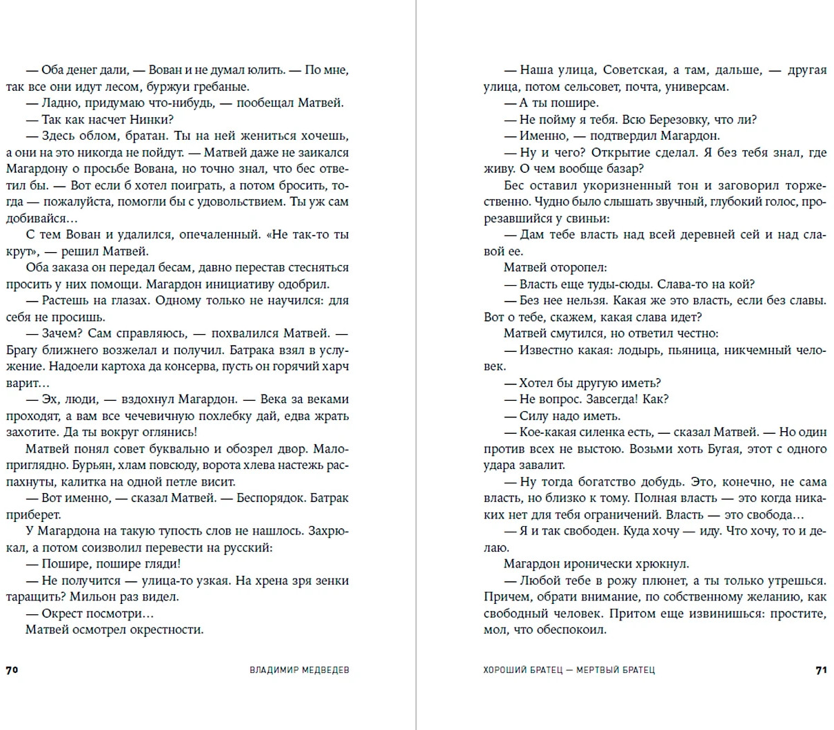 💳 Оплатить за товар можно при получении 🇰🇿 Есть бесплатная доставка по Казахстану 🎁 Копите бонусы с каждой покупки В малой прозе Владимира Медведева абсурдное, потустороннее и реальное сплелись настолько бесшовно, что не всегда понятно, где заканчивается одно и начинается другое. Скорбь, отчаяние, изнуряющие боли и неожиданно проснувшееся чувство долга толкают героев на необычные поступки. Они знакомятся с нечистью, используют магические артефакты и обнаруживают в себе сверхчеловеческие способности, оставаясь при этом обычными людьми: напуганными, растерянными, не всегда кристально порядочными или теми, кто руководствуется высшими идеями во имя установления мирового порядка. |