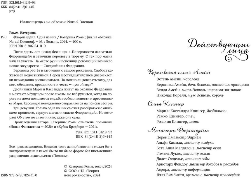 💳 Оплатить за товар можно при получении 🇰🇿 Есть бесплатная доставка по Казахстану 🎁 Копите бонусы с каждой покупки Пятнадцать лет назад беженцы с Поверхности захватили Флориендейл. С тех пор магия начала угасать, а королева была заключена в тюрьму. На месте руин и пепелища революции возникло новое государство: Соединенная Федерация. Вероника растет в заточении с самого рождения. Свобода кажется ей недостижимой, однако перед шестнадцатилетием двери клетки неожиданно распахиваются. Но можно ли доверять тому, для кого обещания, преданность и честь — пустой звук? Двойняшки Мари и Кассандра живут на окраине Федерации и мечтают о будущем после школы, но все рушится, когда на пороге их дома появляется служба госбезопасности и арестовывает Мари. Кассандра немедленно отправляется на поиски сестры. Три девушки. Только одна из них сможет разобраться с ошибками прошлого, вернуть магию и спасти Флориендейл. Но которая? Об этом не знает никто, даже она сама. |
