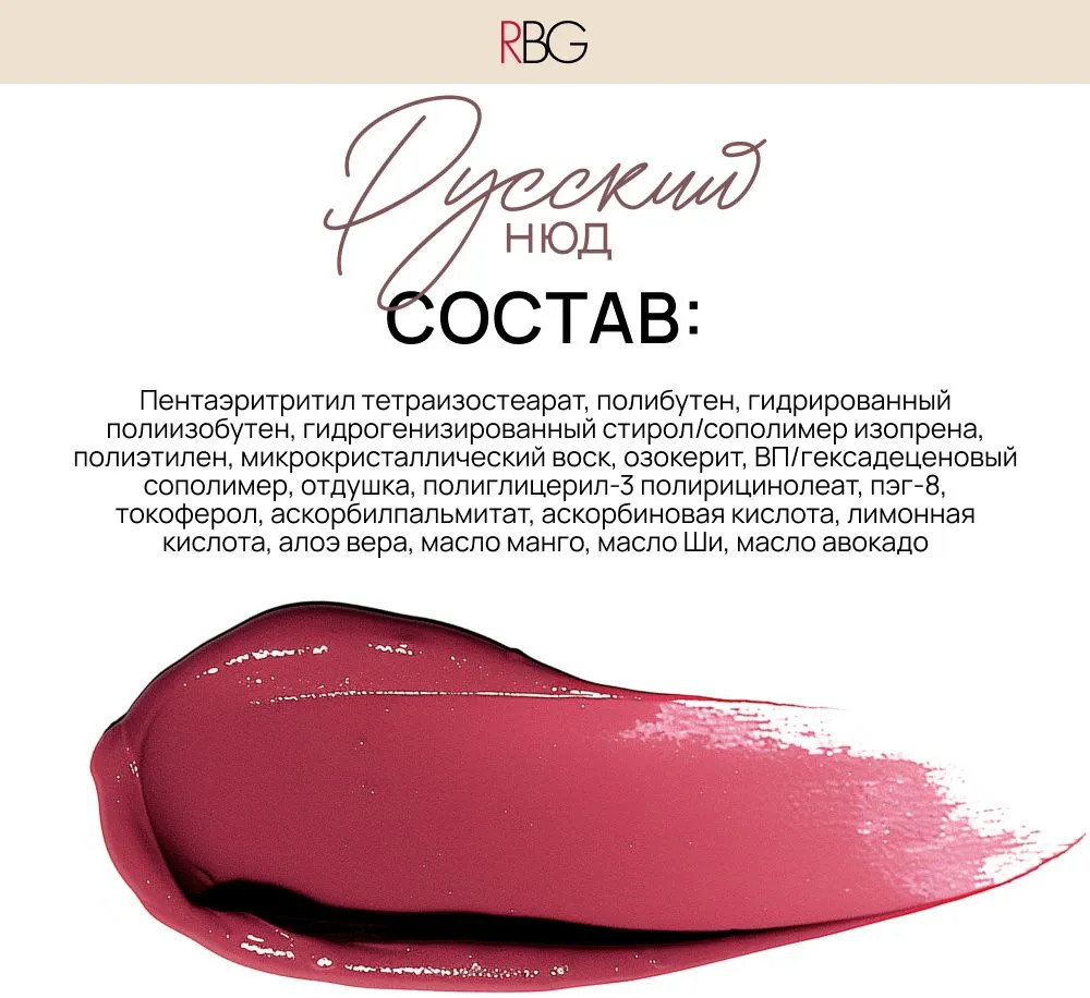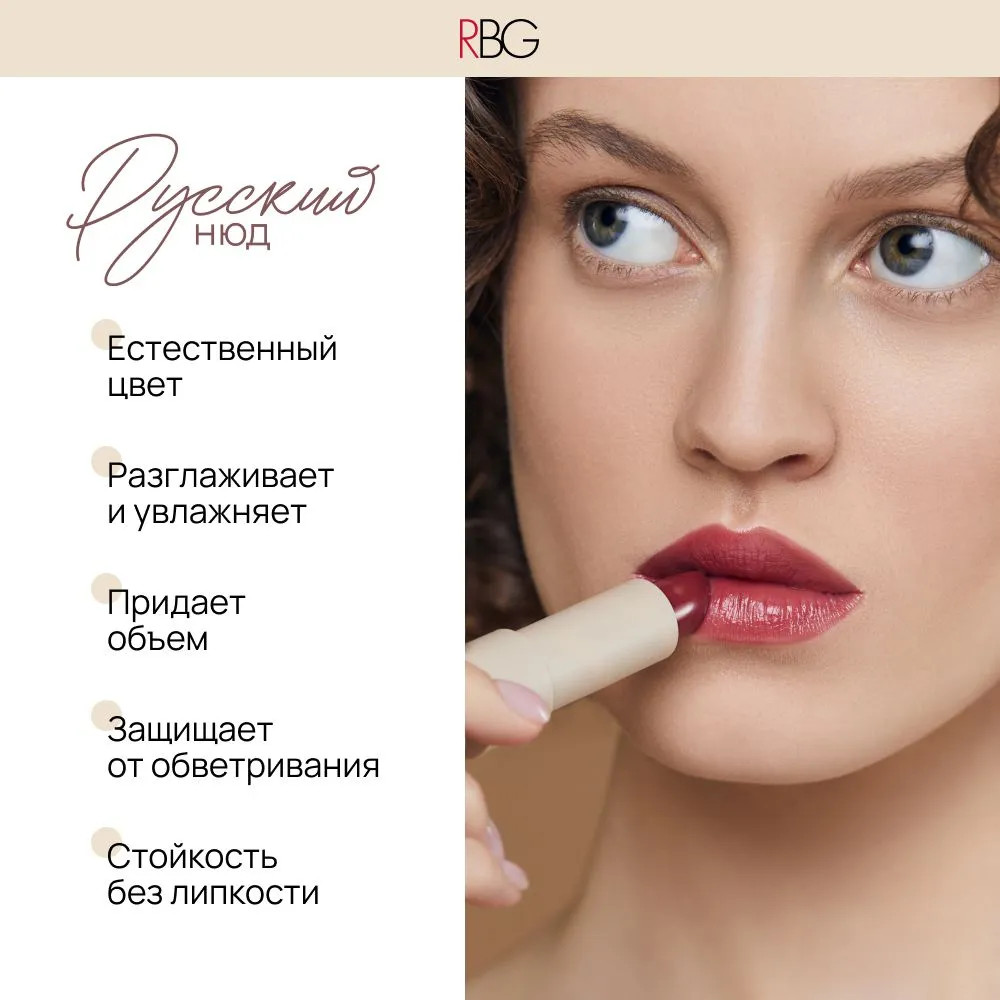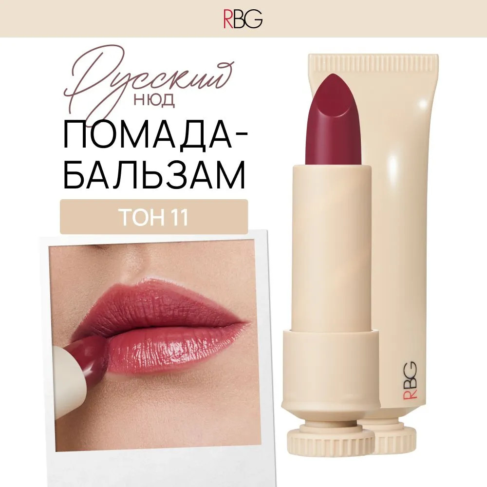 RBG Помада-бальзам для губ глянцевая «Русский нюд», тон 11 Полупрозрачный настоящий розовый