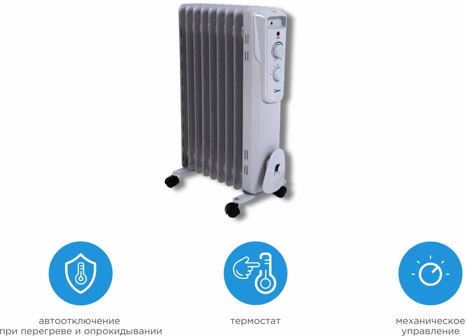 Масляный обогреватель Midea NY2009-16JA рекомендован для обогрева помещений площадью 25 квадратных метров. Его безопасное использование обеспечивается автоотключением при перегреве и опрокидывании, так что вы можете спокойно оставить его на ночь для поддержания комфортной температуры. Удобные колесики и ручка позволять в легкостью перемещать его по комнате. А три режима мощностей адаптированы под любой тип нагрева. Проверенный и надежный он является выбором уже 10000 наших клиентов.