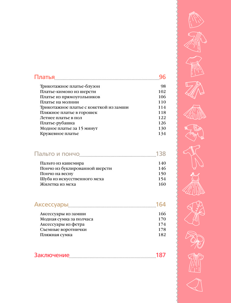 Купила книгу и слегка пожалела, думала, там будет все поподробнее и более актуальные фасоны, основные советы даются на полях и качество некоторых фотографий не айс, для начинающих мастериц не совсем то, что нужно, для опытных совсем бесполезно. Не рискну по ней шить))