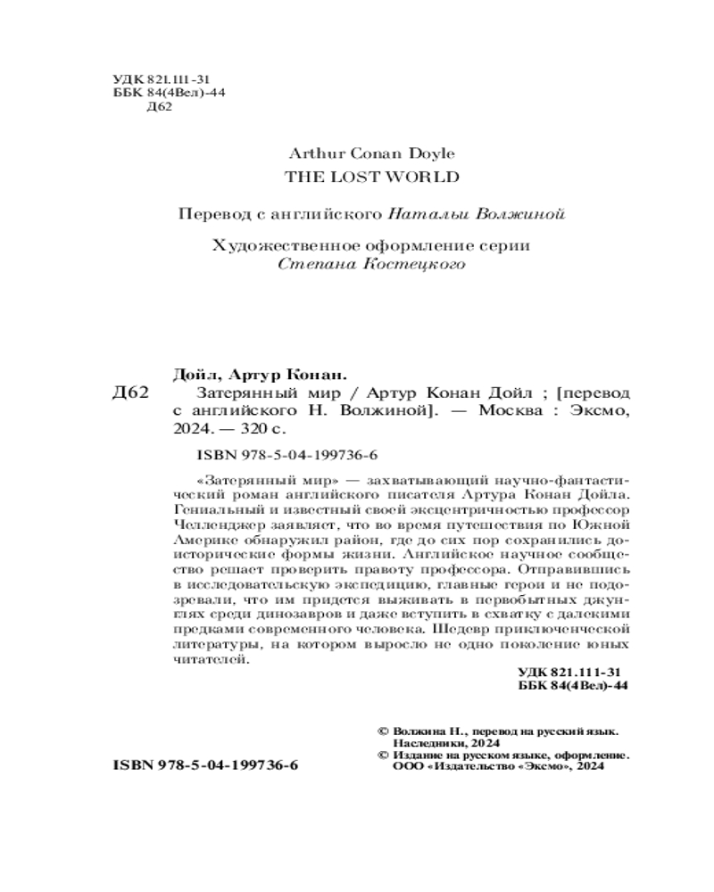 Серия: Pocket Book (обложка) «Затерянный мир» — захватывающий научно-фантастический роман английского писателя Артура Конан Дойла. Шедевр приключенческой литературы, на котором выросло не одно поколение юных читателей. |