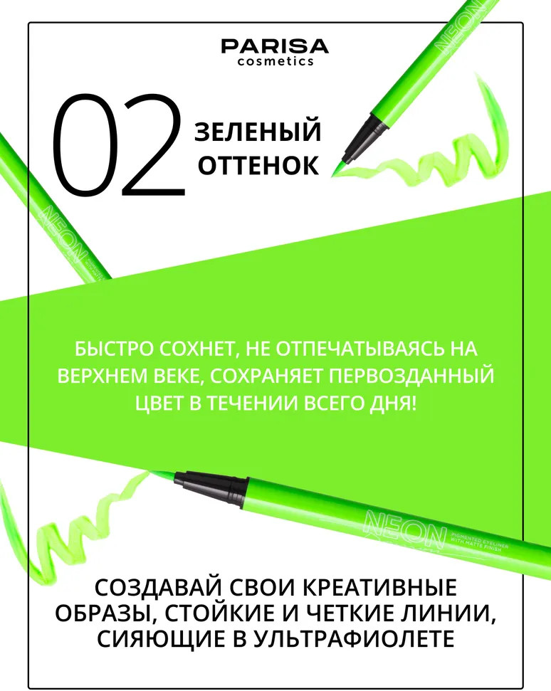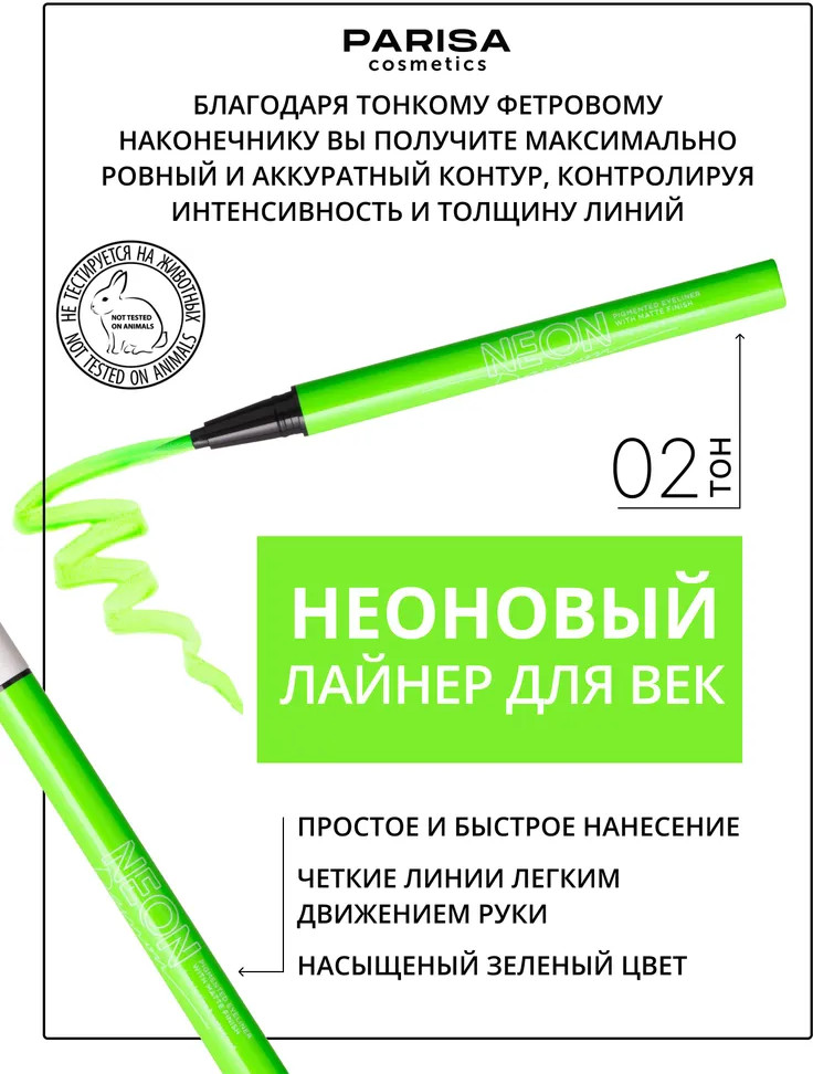 Parisa Cosmetics Лайнер для век «Neon Demon», оттенок 02 Зеленый