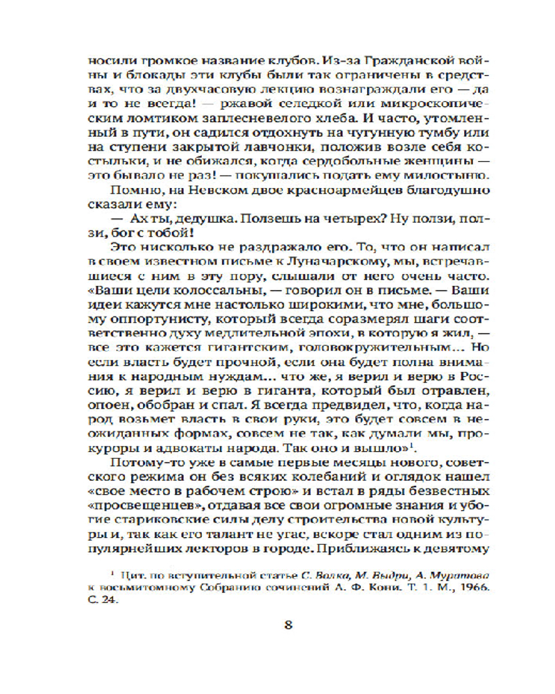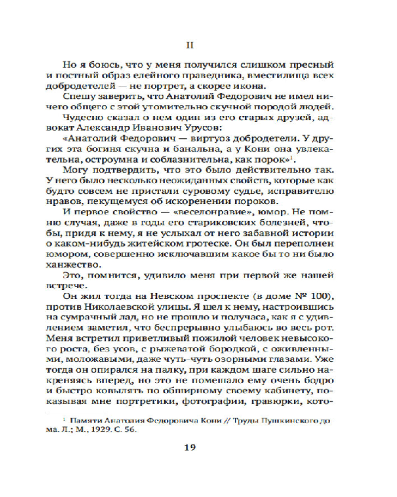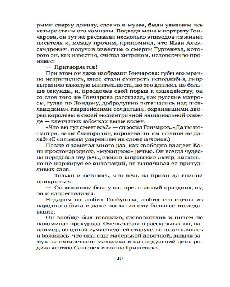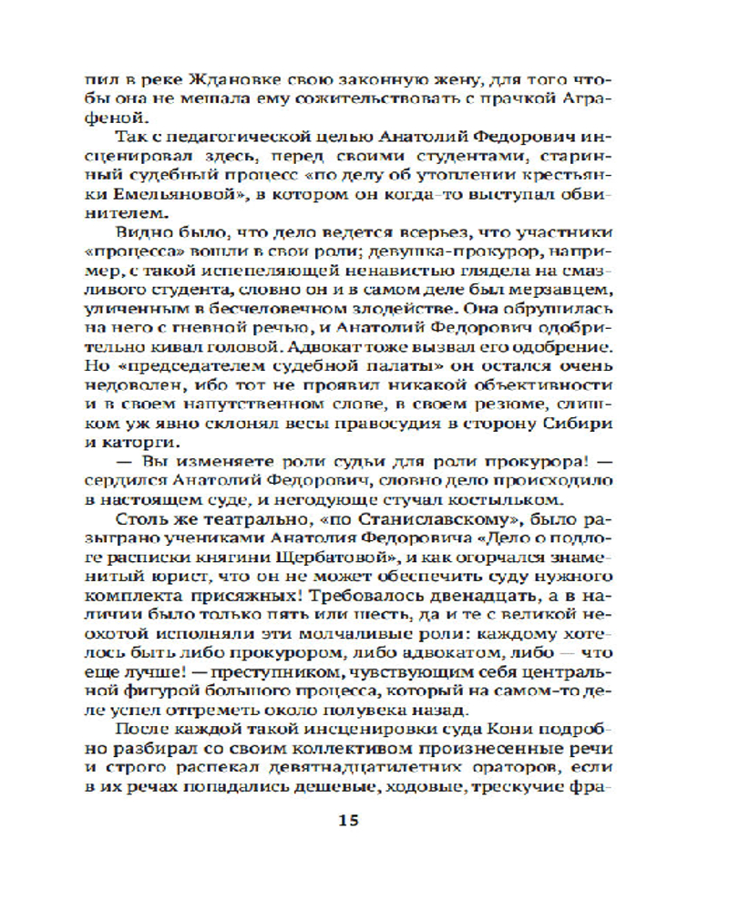 Серия: Азбука-Классика. Non-Fiction Анатолий Федорович Кони (1844-1927) — знаменитый русский юрист, государственный и общественный деятель, литератор. Всю жизнь им руководило стремление осуществить на практике идеи судебной реформы, начатой в России в 1864 году (в частности, она основывалась на принципах процессуальной независимости судей, единого суда для всех сословий, гласности судопроизводства и др.). Будучи уже в преклонном возрасте, он написал: «Я прожил жизнь так, что мне не за что краснеть… Я любил свой народ, свою страну, служил им, как мог и умел». За годы своей профессиональной деятельности Анатолию Федоровичу Кони довелось занимать различные должности в российской судебной системе, включая самые высокие: он был прокурором Санкт-Петербургского окружного суда, вице-директором департамента Министерства юстиции, обер-прокурором уголовного кассационного департамента Сената. Он руководил расследованием сложных, запутанных дел, выступал обвинителем по наиболее серьезным делам. О самых примечательных судебных процессах из своей юридической практики А. Ф. Кони с присущим ему литературным талантом рассказал в статьях и очерках, составивших цикл «Записки судебного деятеля». |