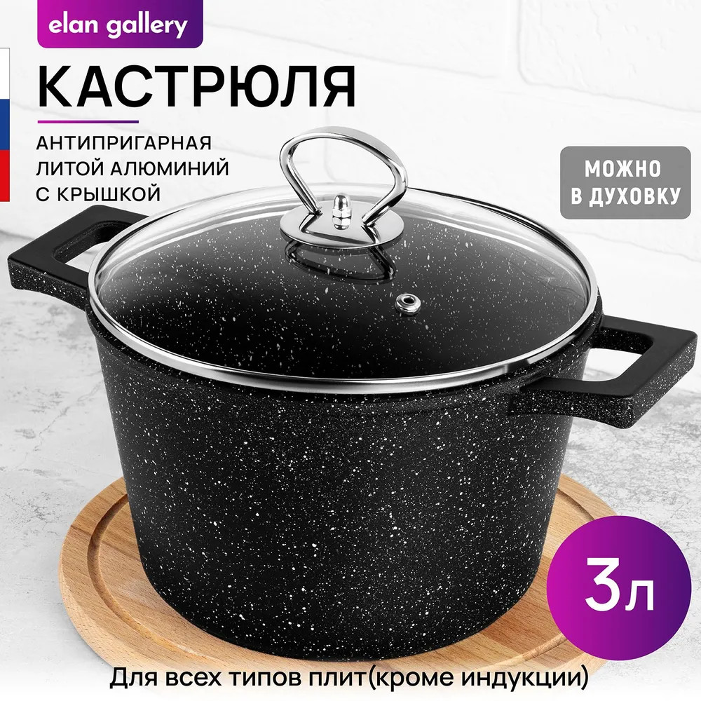Elan Gallery Кастрюля с крышкой «Черный мрамор»