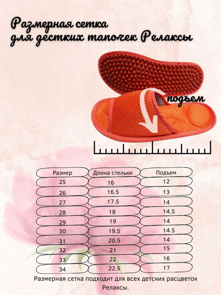 Вашему вниманию мы представляем уникальные массажные тапочки Релаксы для детей. Это не простые тапочки Релаксы, они отличаются от обычных домашних тапочек. Их носят взрослые и дети. Уникальность тапочек в том что они массажные профилактические тапочки Релаксы. Массаж стопы полезен детям с врождённым плоскостопием и начальной стадии и просто для профилактики стоп. К сожалению, бывает неправильно подобрана обувь, из этого может развиваться начальная стадия плоскостопия, так у взрослых и детей. Повседневные тапочки Релаксы дадут ребенку комфорт и поставят правильный свод ножки. Тапочки можно брать в поездку, на тренировку, на дачу, в детский сад. Массажные тапочки удобные и много места не будут занимать, в сумке или рюкзаке. Так же можно сделать приятный подарок для детей. Позаботьтесь о здоровье вашего чадо.
