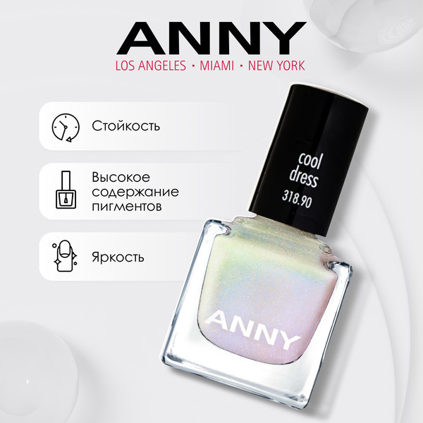ANNY Лак для ногтей, оттенок 318.90 Снежный с легким розовым перламутровым отблеском