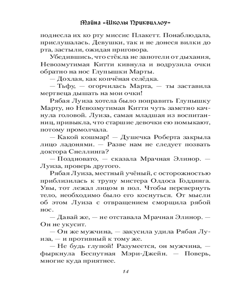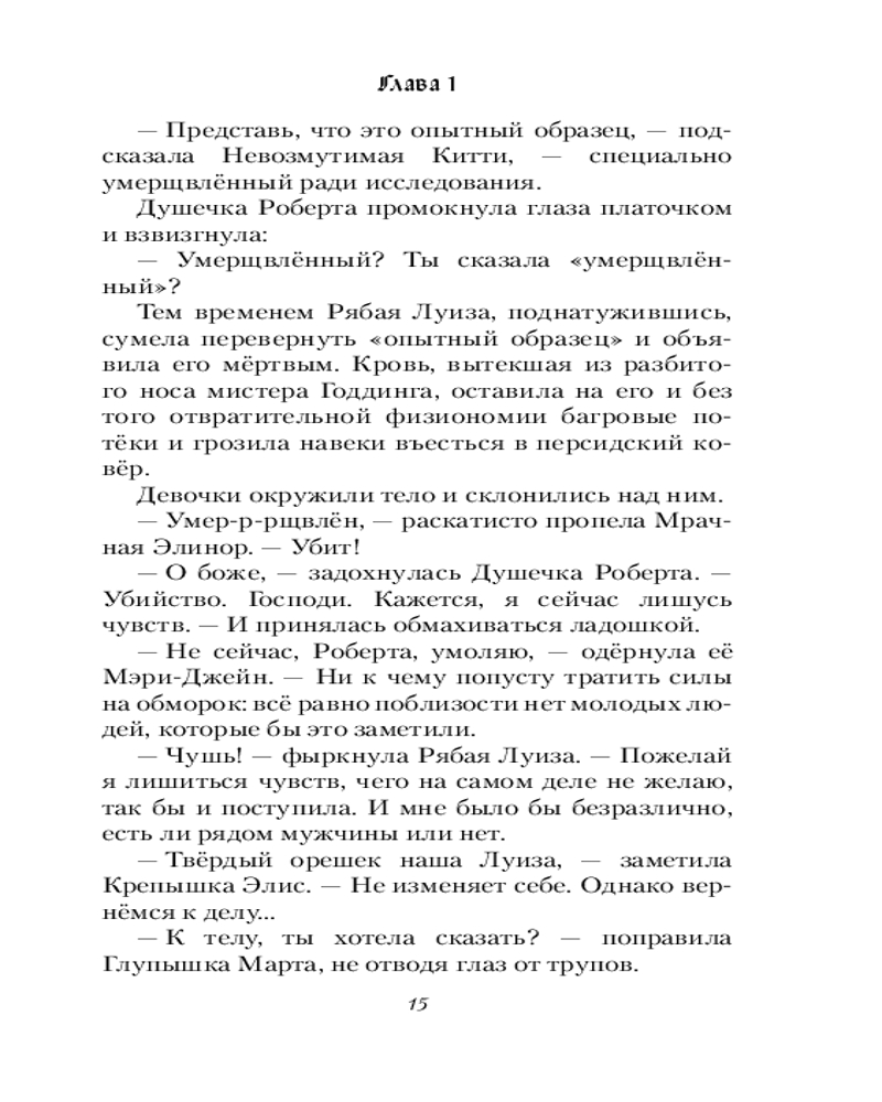 Серия: Книги Джули Берри Семеро воспитанниц понимают, что миссис Плакетт и мистера Годдинга отравили, но кто?! И ведь если об этом узнают соседи, то школу наверняка закроют, а девушек отправят по домам. А тем временем в школу один за другим очень некстати прибывают посетители (например, влюблённый в директрису адмирал!). Поэтому девушки решили сделать вид, что ничего не произошло, и скрыть преступление. К тому же оказалось, что финансовые дела директрисы совсем плохи. Так на какие средства содержалась школа?! И кто всё-таки убийца? Каждая из школьниц талантлива по-своему, объединив усилия, они берутся за расследование. |