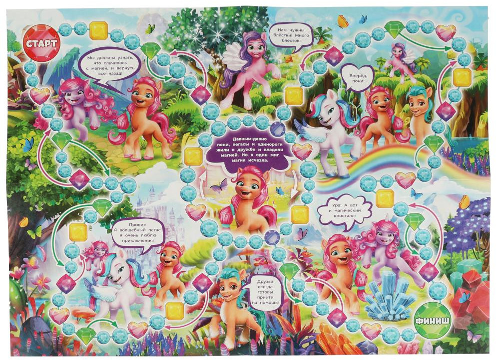 Серия: Милые пони Настольная игра-ходилка «Милые пони» — игра, в которой нужно отправиться на поиски пропавшей магии! Давным-давно земные пони, пегасы и единороги жили в дружбе и согласии, а их мир был наполнен магией. Но в один миг магия исчезла. Нужно помочь маленьким друзьям найти волшебный кристалл и вернуть всё на свои места! Игра-ходилка ТМ «Умные игры» развивает: ориентацию на плоскости, внимание, визуальное восприятие, логику, социально-коммуникативные навыки. |