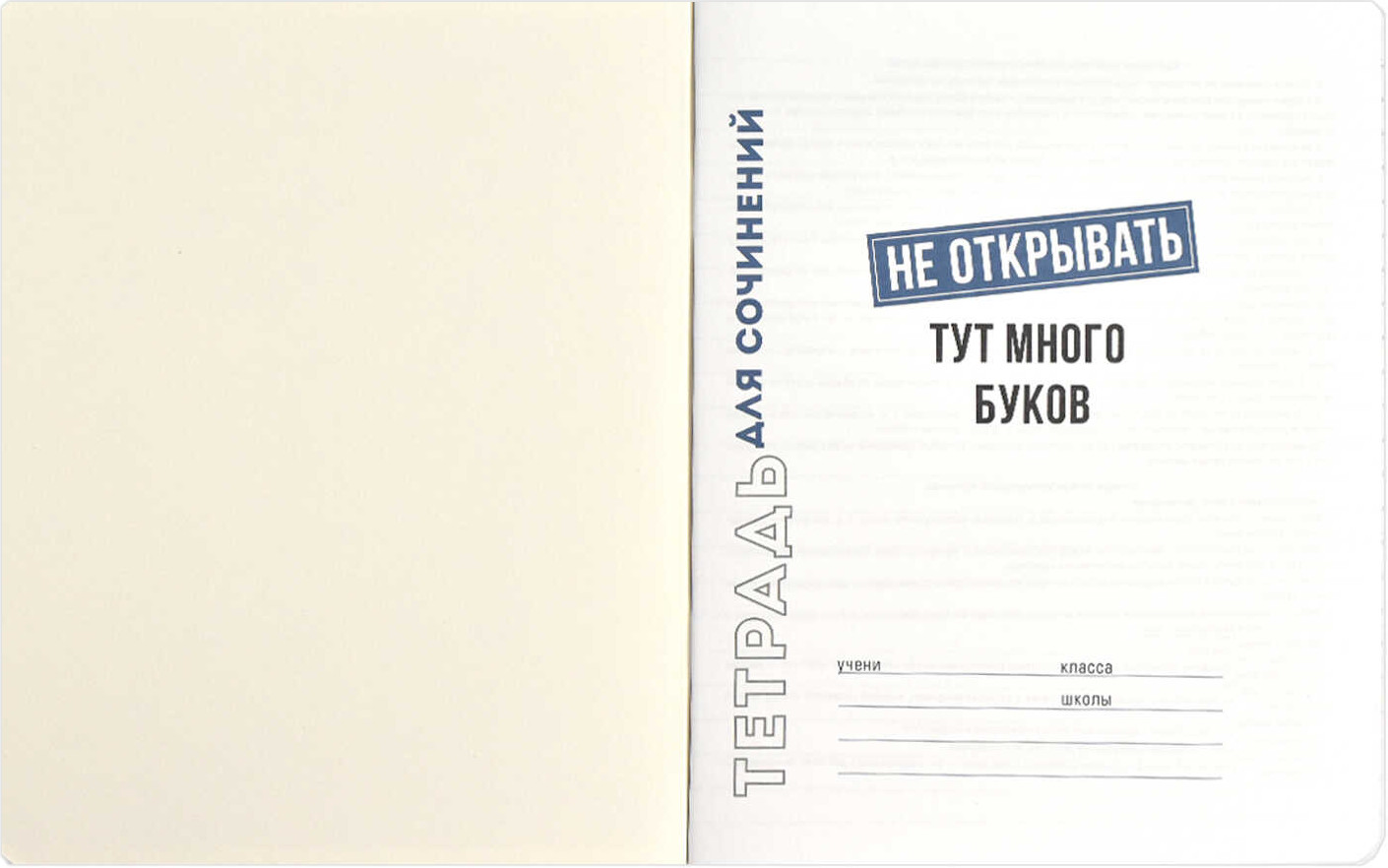 Белые листы, информация по предмету внутри есть, оригинальный дизайн и фраза.