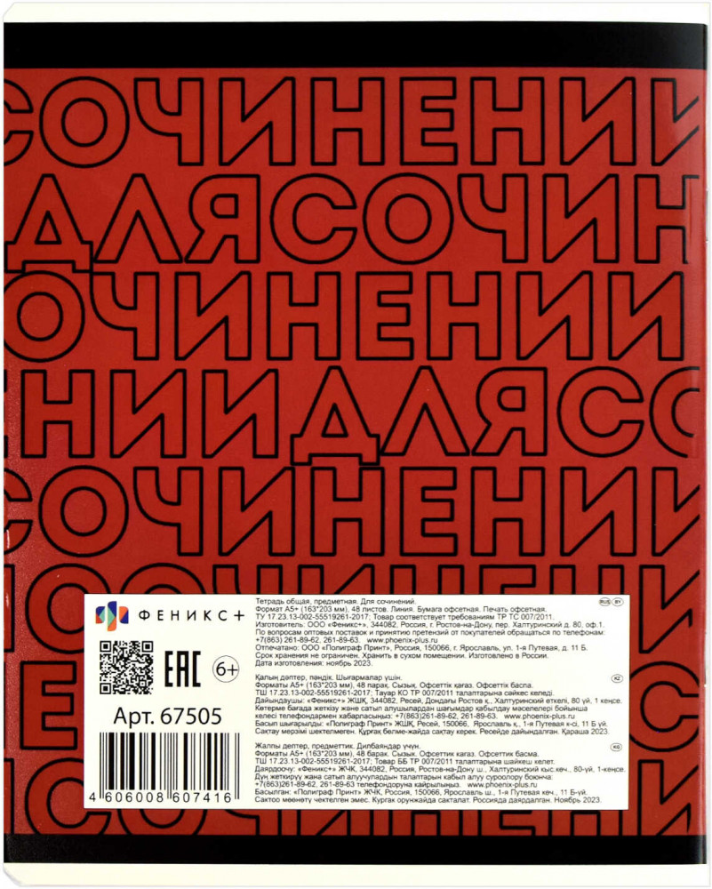 Феникс + Тетрадь предметная «Для сочинений»-25%