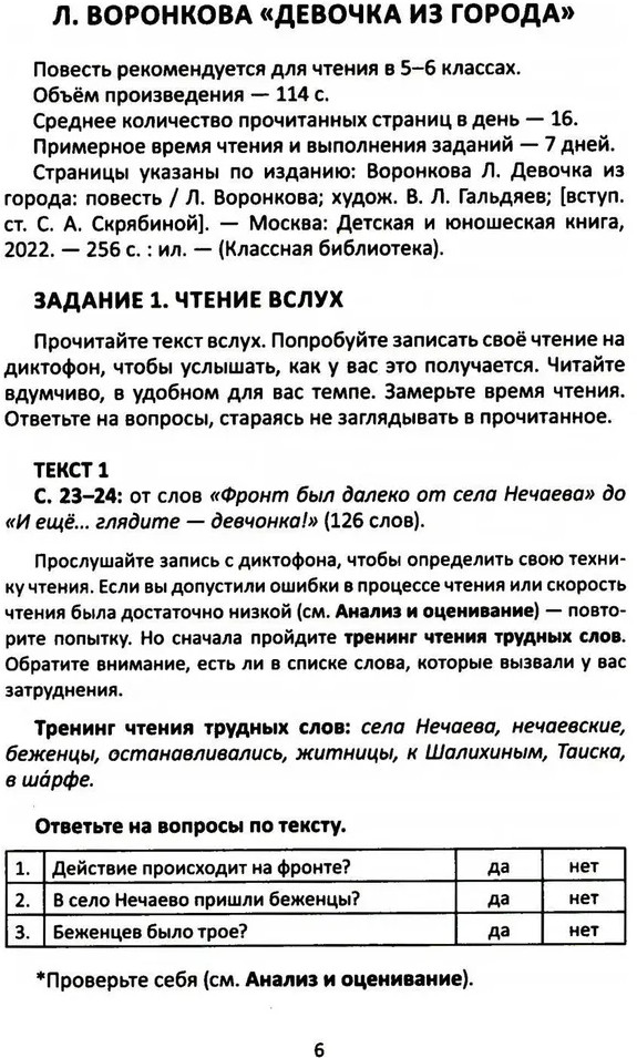 Сопроводительные задания к чтению повести Л. Ф. Воронковой «Девочка из города»