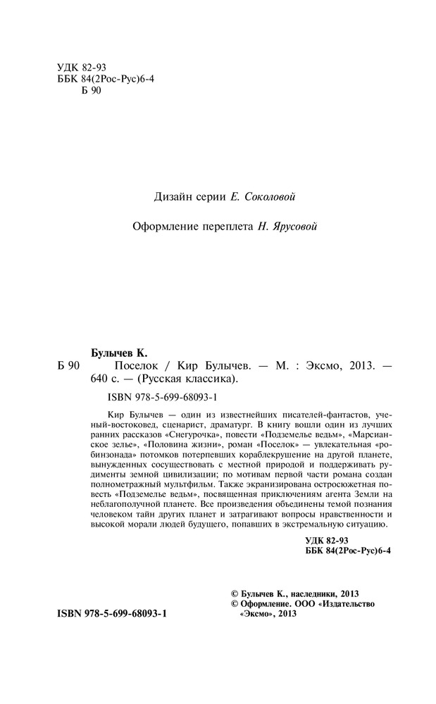 В данный момент этот товар отсутствует в продаже. Возможно, у нас найдется аналогичный или похожий товар здесь. Серия: Русская классика Кир Булычев — один из известнейших писателей-фантастов, ученый-востоковед, сценарист, драматург. В книгу вошли один из лучших ранних рассказов «Снегурочка», повести «Подземелье ведьм», «Марсианское зелье», «Половина жизни», роман «Поселок»- увлекательная «робинзонада» потомков потерпевших кораблекрушение на другой планете, вынужденных сосуществовать с местной природой и поддерживать рудименты земной цивилизации; по мотивам повести создан полнометражный мультфильм. Также экранизирована остросюжетная повесть «Подземелье ведьм», посвященная приключениям агента Земли на неблагополучной планете. Все произведения объединены темой познания человеком тайн других планет и затрагивает вопросы нравственности и высокой морали людей будущего, попавших в экстремальную ситуацию. |