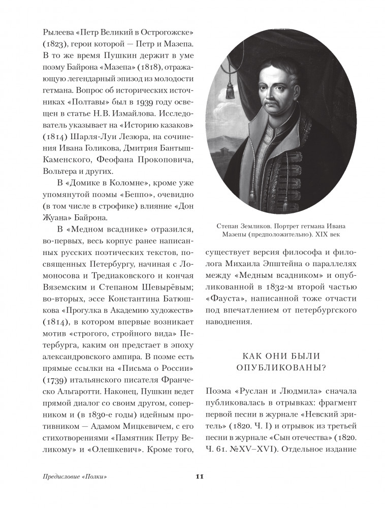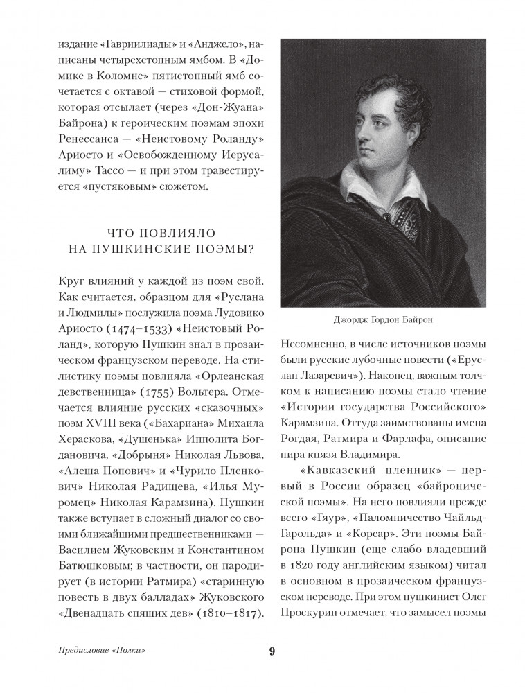 В своих поэмах Пушкин проходит путь от волшебной сказки и романтических подражаний Байрону до создания собственной — и, значит, отчасти общей — исторической концепции и мифологии. |