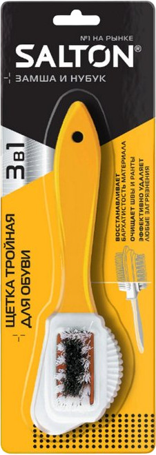 Salton Щетка тройная для изделий из замши и нубукахорошо чистит подходит для замши и нубука качественная удобная не оставляет следов