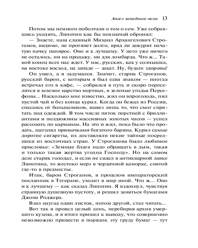 «Ангел Западного окна» — самое значительное произведение австрийского писателя-эзотерика Густава Майринка. Автор представляет нам своих героев бессмертными: они живут и действуют в Шекспировскую эпоху, в XX веке и в потустороннем мире, где раскрывается их подлинное естество. В центре повествования — судьба реального лица английского натурфилософа, математика, астронома и алхимика Джона Ди, неразрывно сплетенная с судьбой его дальнего потомка, которому в конце концов удается рассеять чары злых сил и в полном сознании переступить порог инобытия. Герметическая символика, каббала, спиритизм, алхимия наполняют роман.