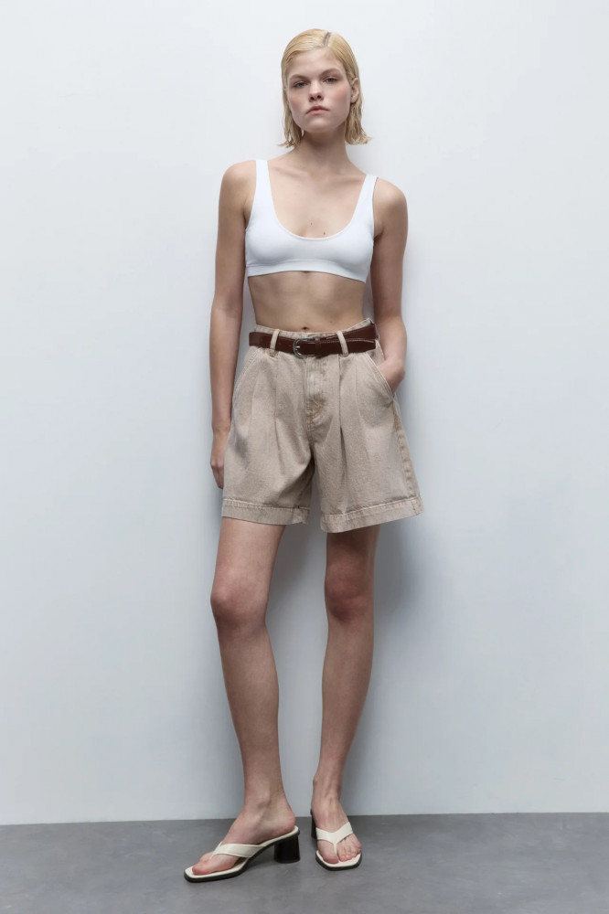 Стильные и очень удобные светлые джинсовые шорты с высокой посадкой и ремнем идеально сочетаются с любыми топами, майками, футболками и рубашками и составят отличную основу твоего весенне-летнего гардероба. Универсальные и практичные короткие джинсовые шорты, с которыми можно составить несчетное количество аутфитов в любом стиле и под любое настроение. Идеальные летние шорты для расслабленных луков на каждый день или в твой долгожданный отпуск в теплых краях.