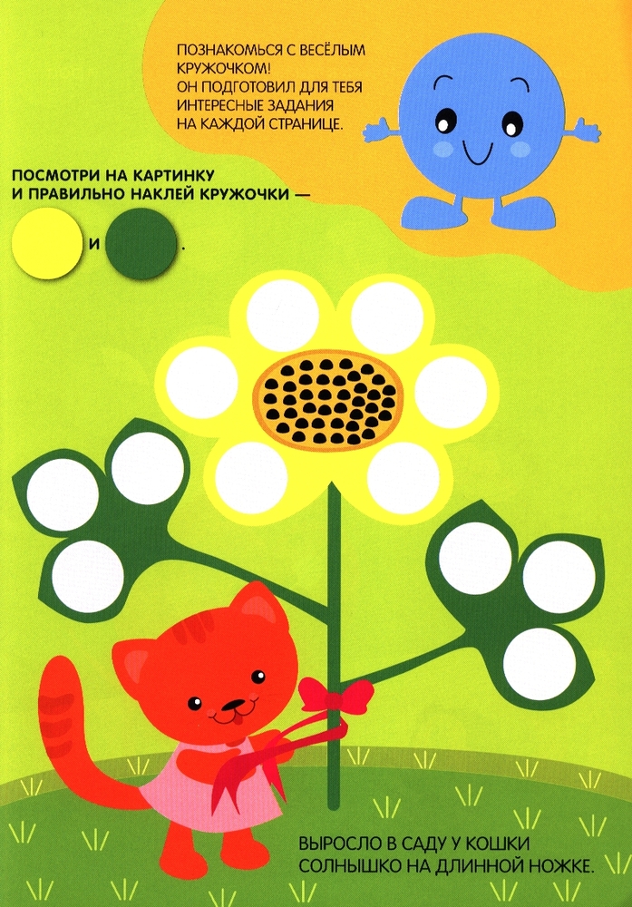 Начали покупать различные книжки с наклейками с 1,5 лет. Сейчас ребенку почти 3 и книжки из этой серии очень нравятся. По началу доча клеила кружочки как попало, теперь старается и получается почти ровно приклеить, если видит, что криво наклеила, то отклеивает и лепит их правильно. Серия очень яркая, картинки красочные, на каждой страничке двухстрочные стишки, что очень нравится. Проходим всю книжку за один присест, так как очень нравится ребенку. И каждый раз просит купить еще кружочки)))) Советую к приобретению.