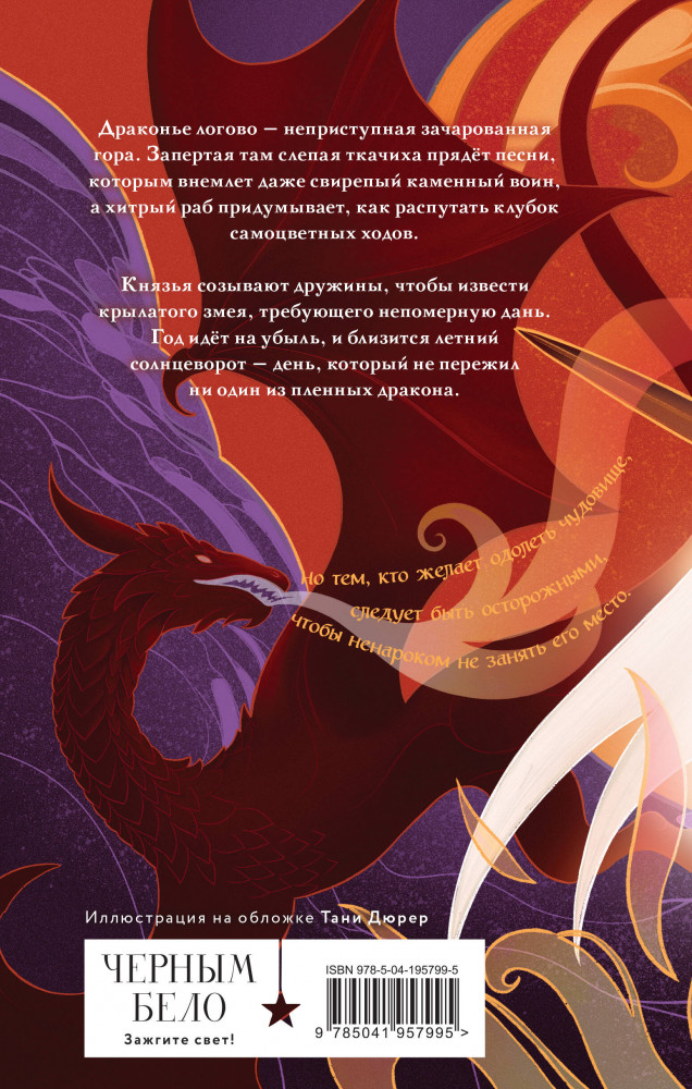 Змеиное гнездоВ данный момент этот товар отсутствует в продаже. Возможно, у нас найдется аналогичный или похожий товар здесь. Серия: Young Adult. Книжный бунт. Новые сказки Драконье логово — неприступная зачарованная гора. Запертая в недрах слепая ткачиха прядет песни, которым внемлет даже свирепый каменный воин, а хитрый раб придумывает, как распутать клубок самоцветных ходов. Князья созывают дружины, чтобы извести крылатого змея, требующего непомерную дань. Год идет на убыль, и близится летний солнцеворот — день, который не пережил ни один из пленных дракона. |