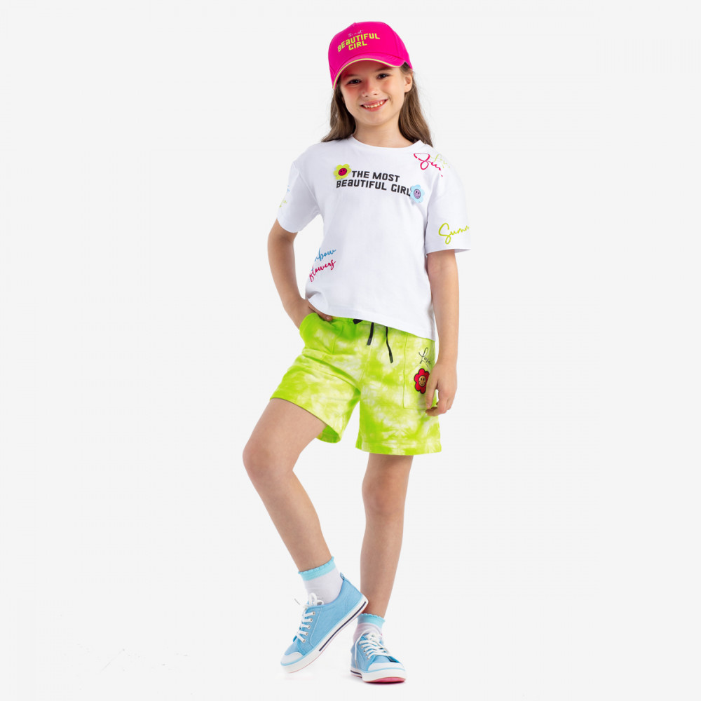 Укороченная футболка изготовлена из мягкого и приятного на ощупь 100% хлопка. Дизайн с яркими принтами и объемными нашивными 3D-элементами обязательно привлечет внимание. Классический белый цвет позволяет легко сочетать эту футболку с любыми другими предметами гардероба. В ней будет комфортно как играть в активные игры, так и заниматься спортом.