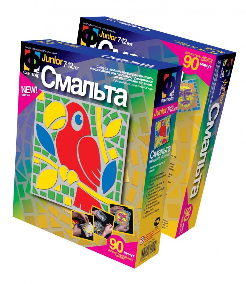 Эта игрушка представляет собой набор для создания мозаики из смальты "Фантазер". При помощи специальных форм, гипса и особых мозаичных элементов, выполненных из так называемого "мягкого пластика", Вы сможете легко создать вместе со своим ребенком шедевр, который Вы и Ваш ребенок будете с гордостью показывать своим друзьям. Сам процесс создания мозаики чрезвычайно занимателен и в игровой форме многое расскажет Вашим детям о свойствах различных материалов, чудесном превращении воды в камень; что гипс сильнее клея и о многом другом. Вас ждет полтора часа интересного занятия и отличный результат.